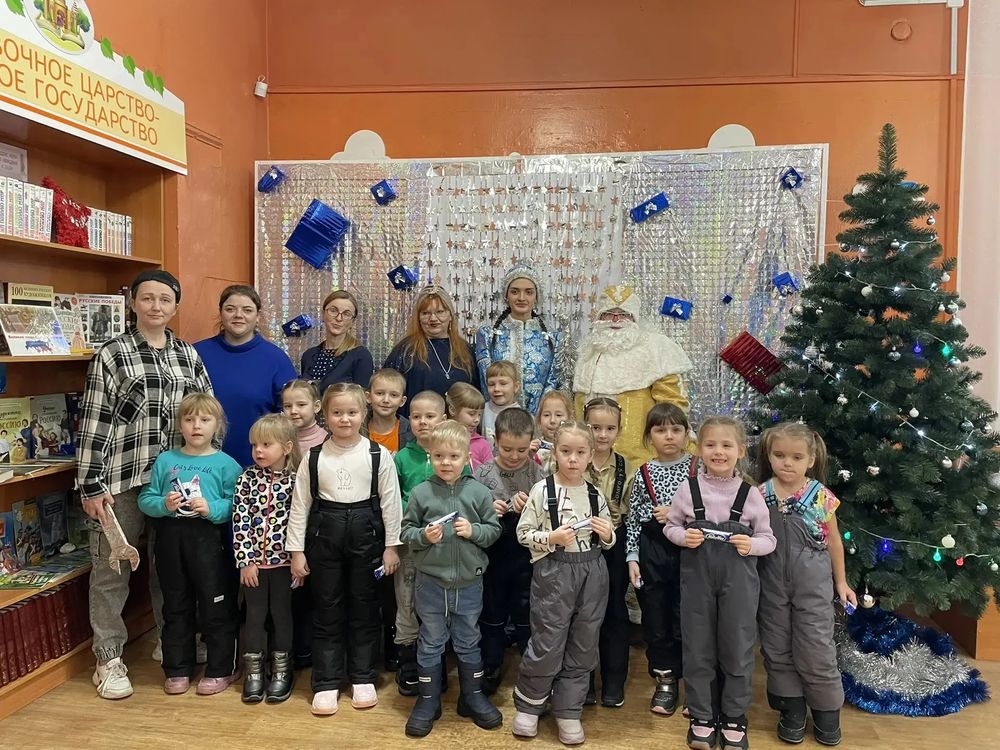 Ребята из 4 группы "Затейники" посетили городскую детскую библиотеку, где посмотрели сказку-мюзикл "Космический новый год или спасение деда Мороза из невесомости".